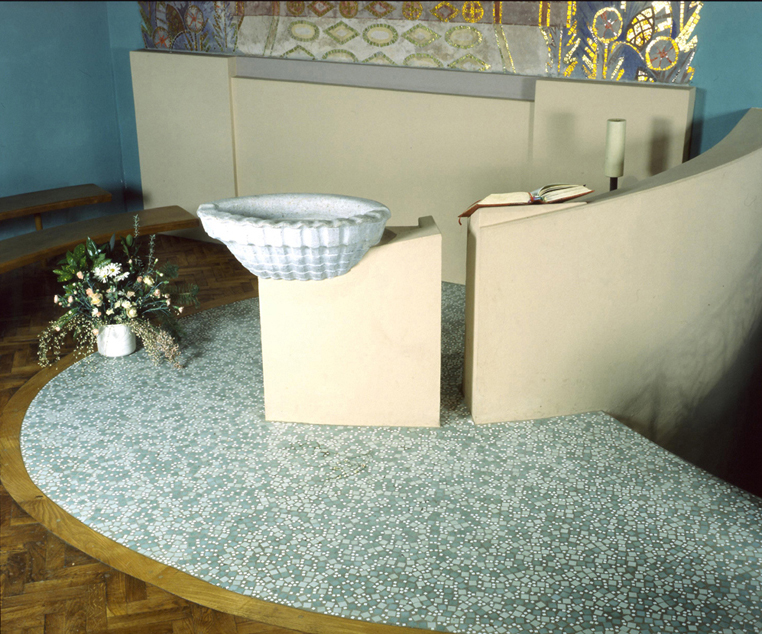 BAPTISTEREEglise Sainte Marie d'Anglet (1996. Marbre, mosaïque et brique. )
